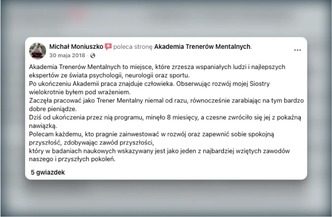 Warto pamiętać, że trening mentalny to nie tylko moda – to narzędzie, które realnie wpływa na skuteczność, pewność siebie i dobrostan. Jeśli szukasz rozwoju, motywacji i wewnętrznej siły, a nie terapii sensu stricto, trening mentalny będzie właściwym wyborem. W Akademii Trenerów Mentalnych uczymy, jak profesjonalnie prowadzić takie procesy – z poszanowaniem granic, ale też z ogromnym zaangażowaniem i skutecznością. Dlatego właśnie trening mentalny zyskuje coraz większą popularność jako forma świadomego rozwoju – nie jako terapia, lecz jako inwestycja w siebie.